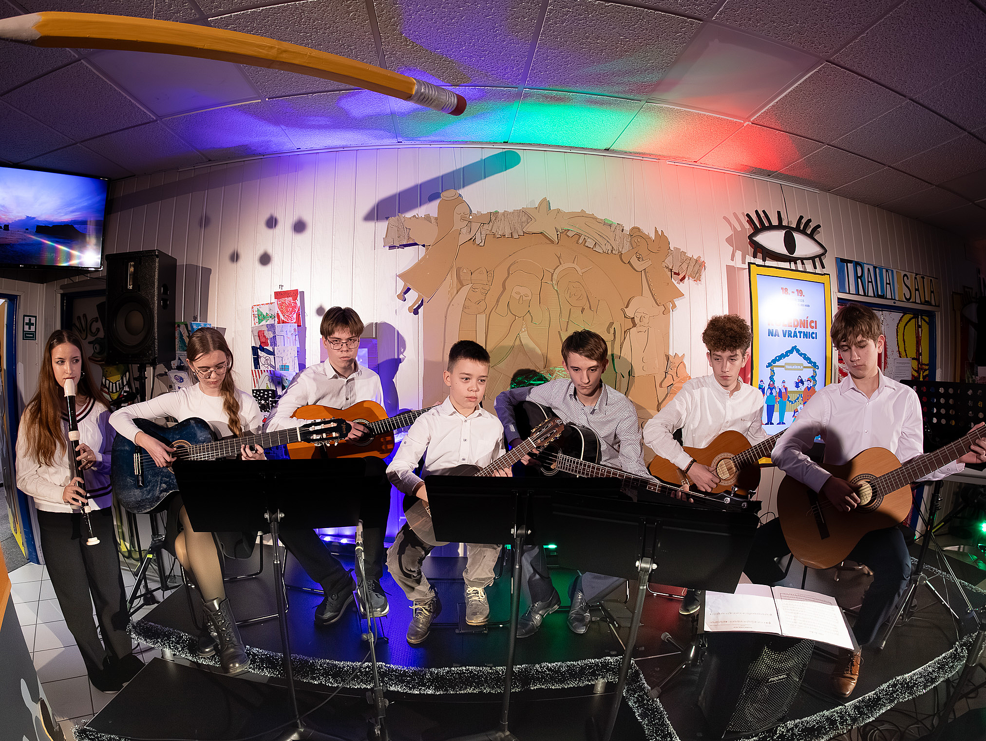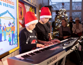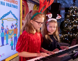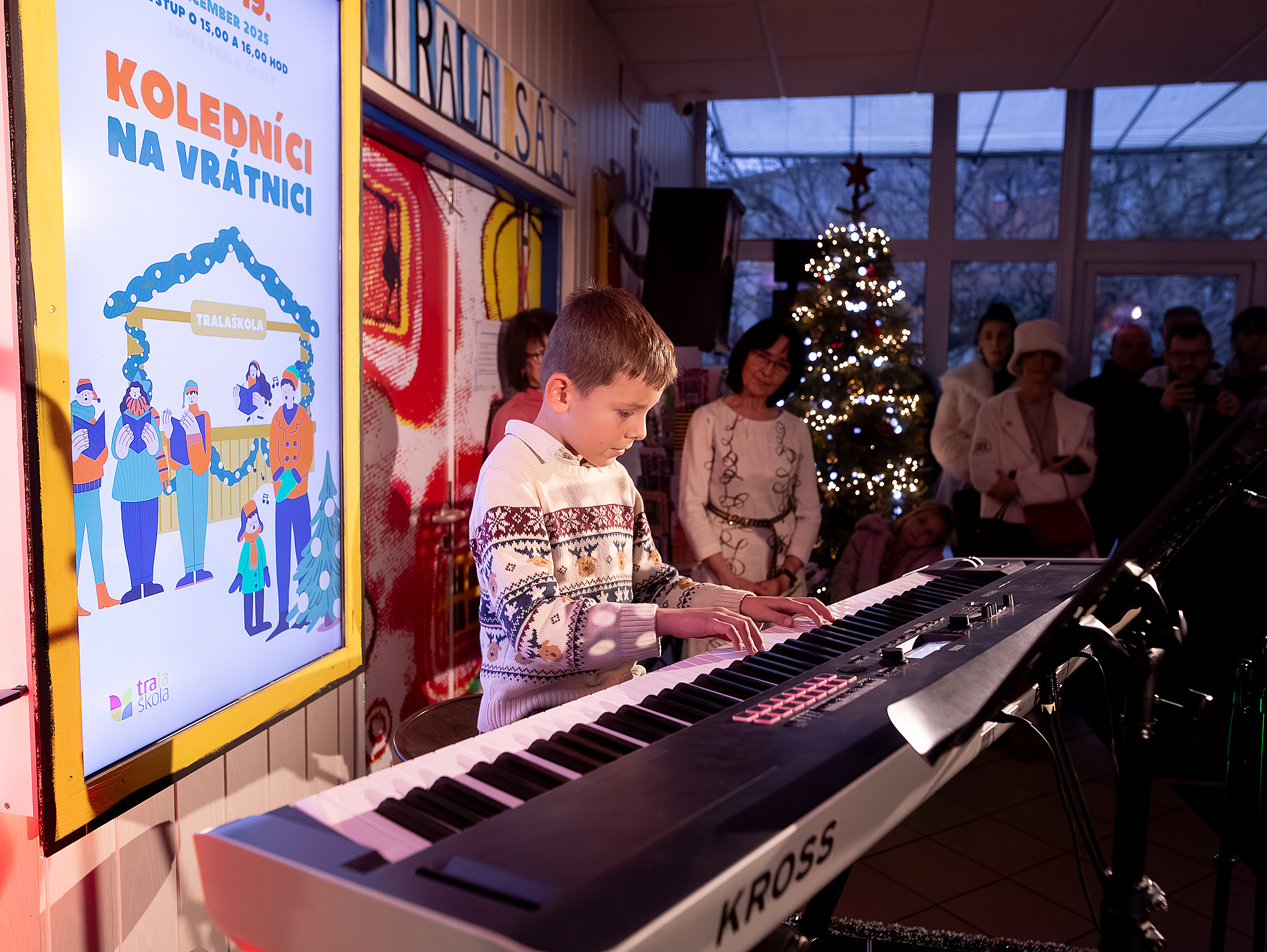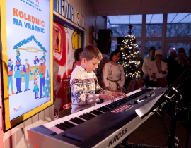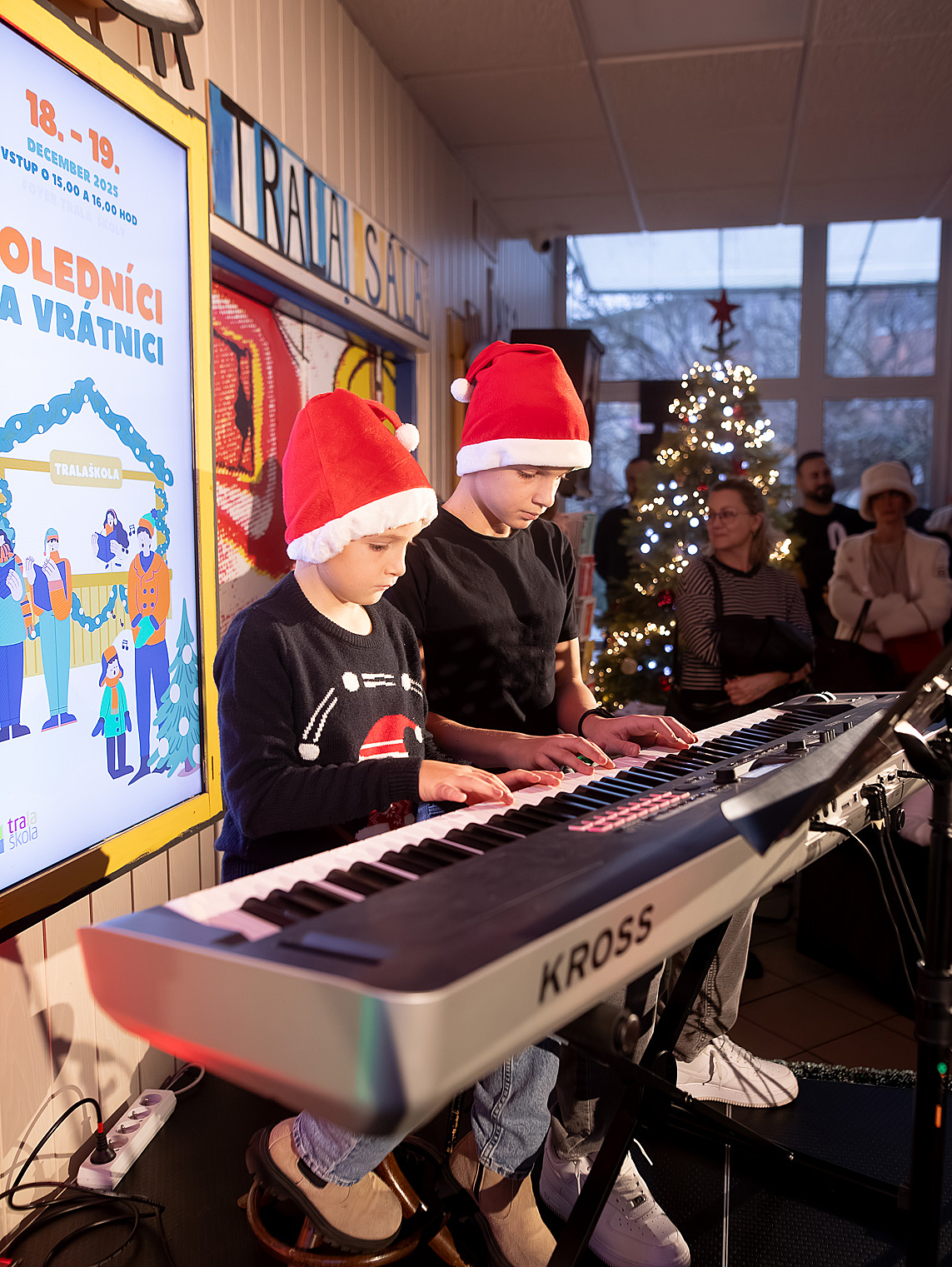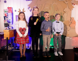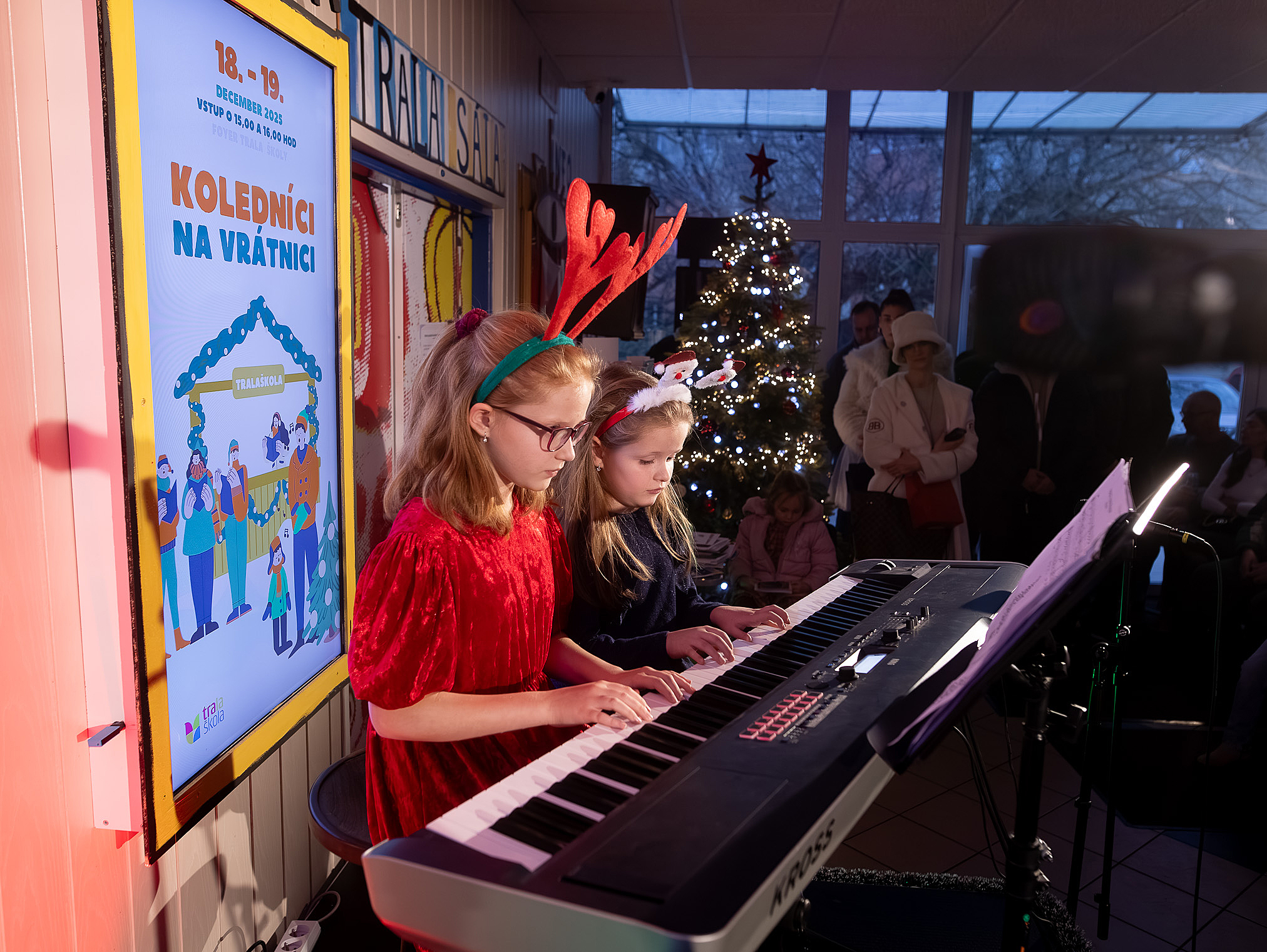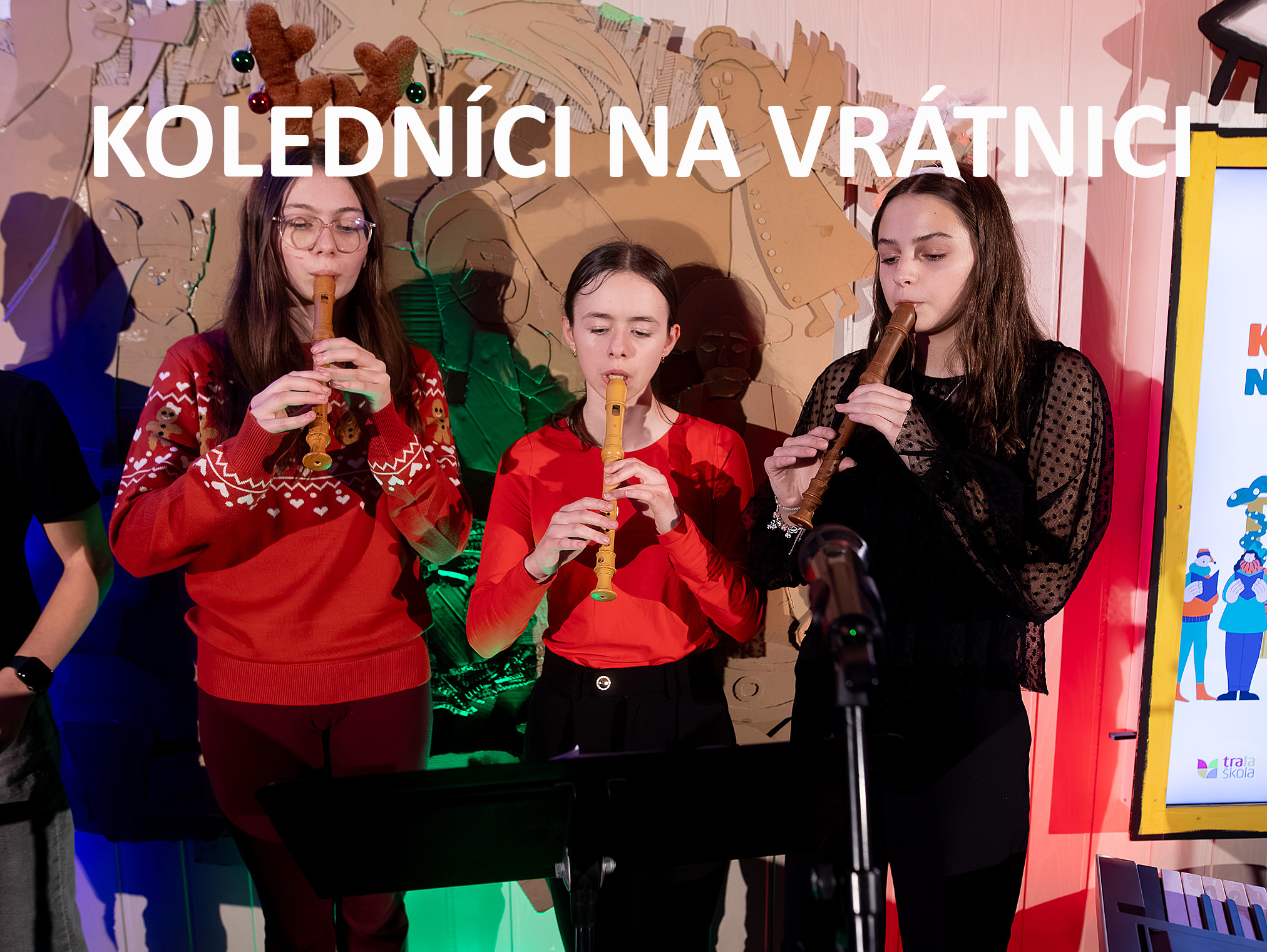 Ako už tradične, aj tento rok zavítali naši koledníci na recepciu školy /vrátnicu/, aby spríjemnili roddičom vstup do Tralaškoly v predvinočnom období. A tak vznikli Koledníci na vrátnici.