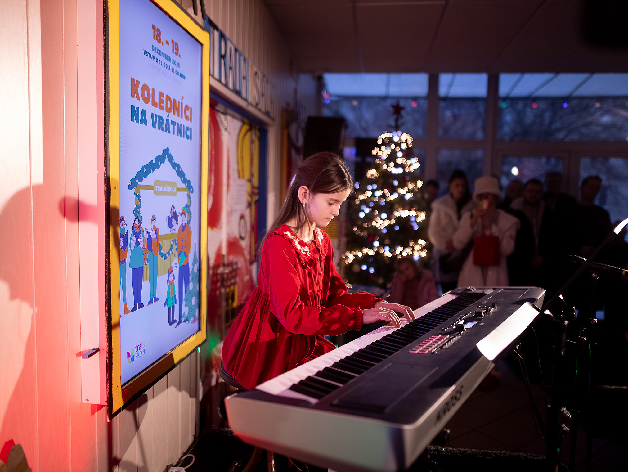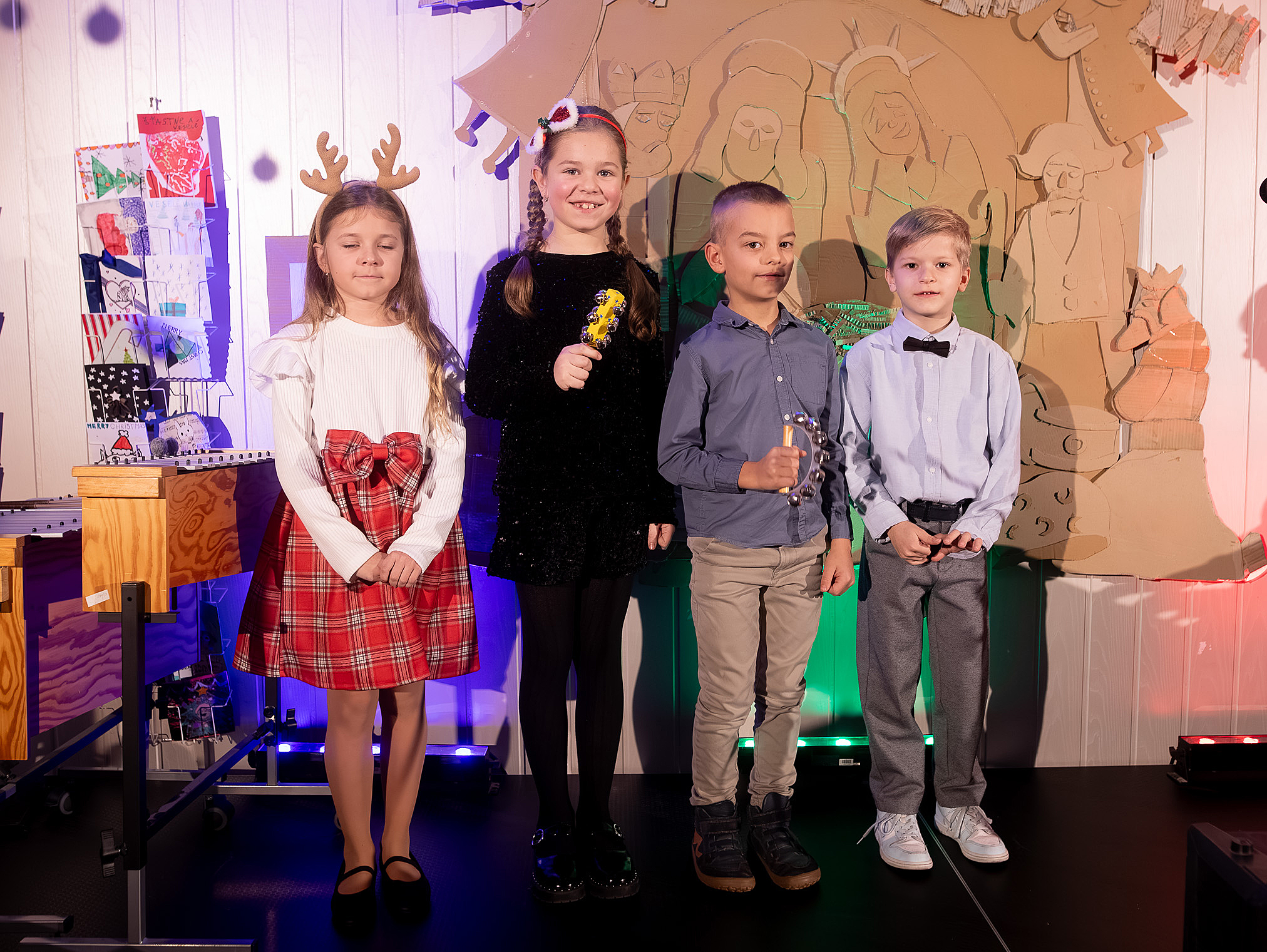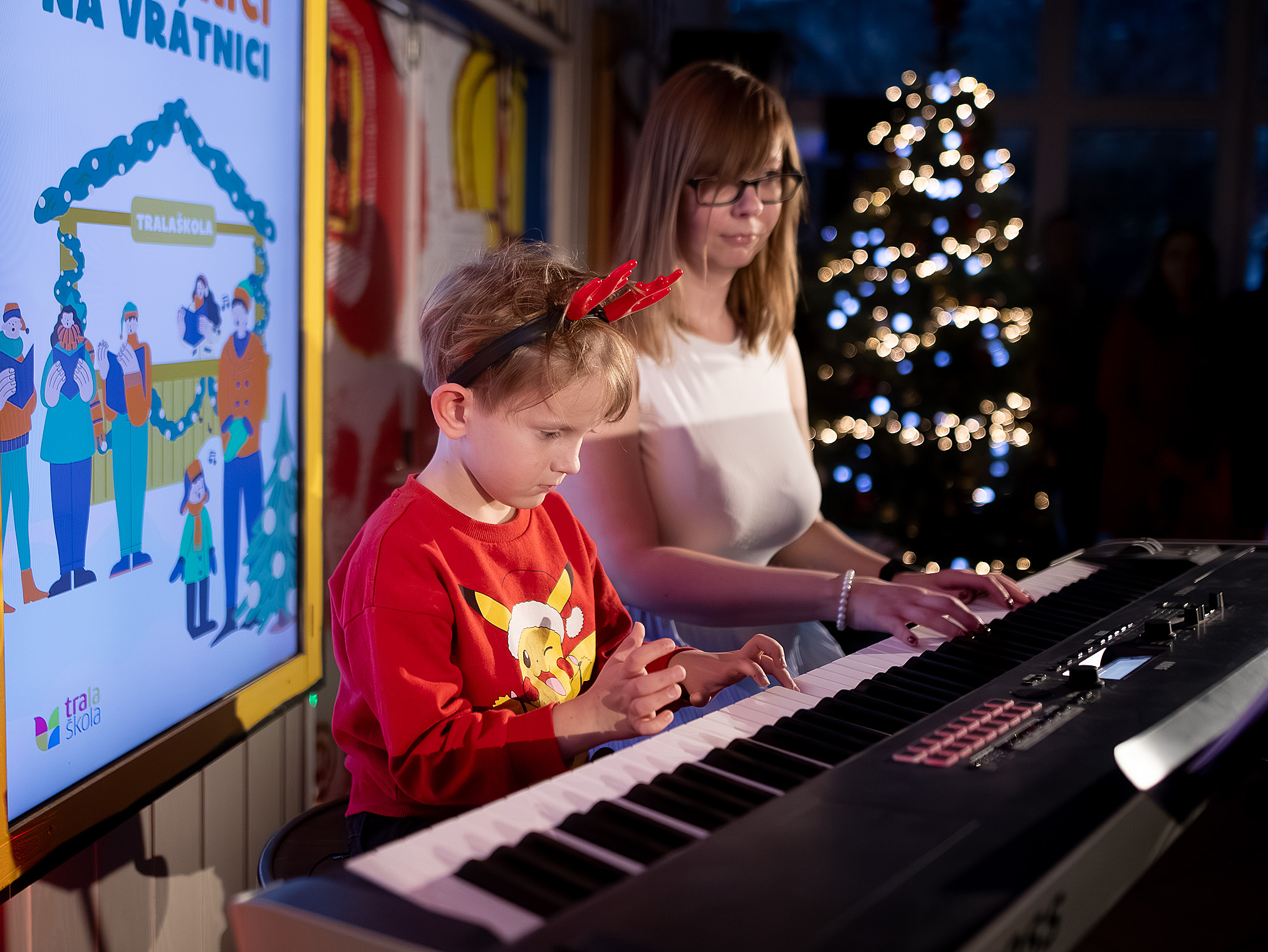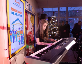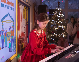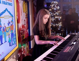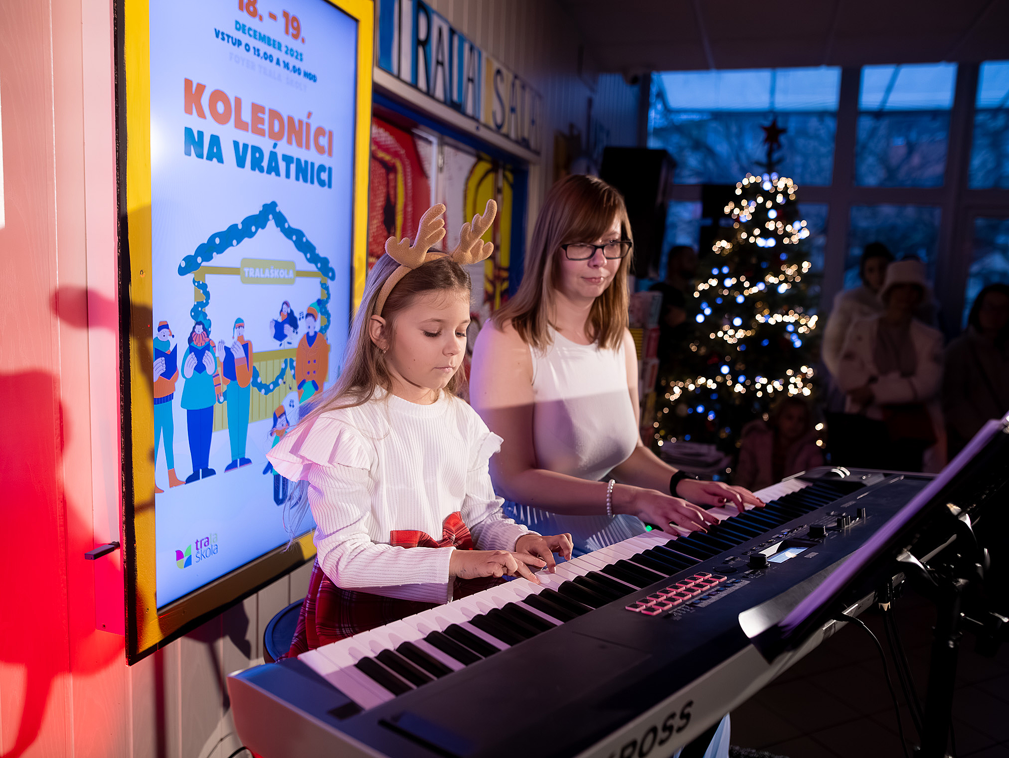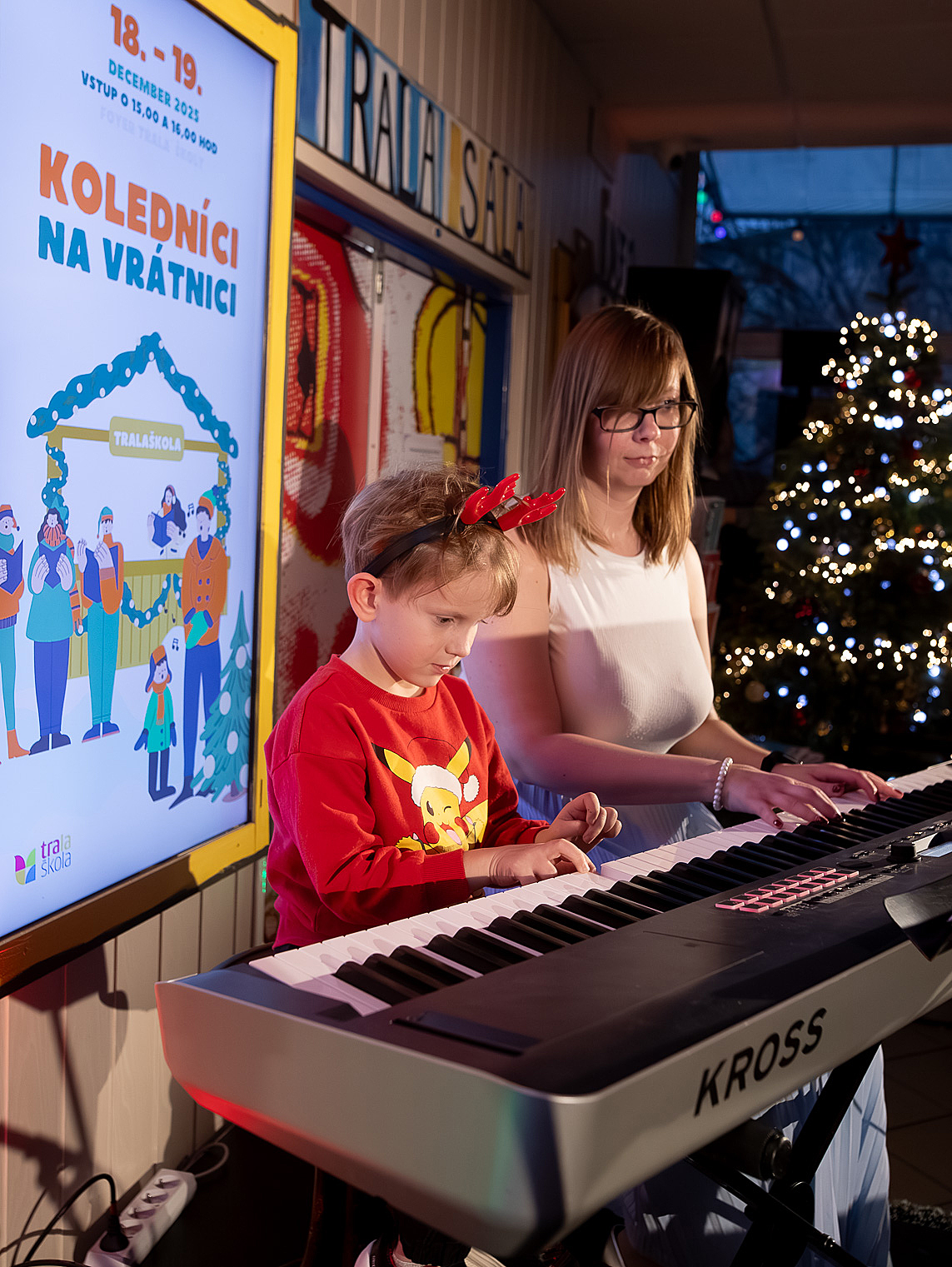 Ako už tradične, aj tento rok zavítali naši koledníci na recepciu školy /vrátnicu/, aby spríjemnili roddičom vstup do Tralaškoly v predvinočnom období. A tak vznikli Koledníci na vrátnici.