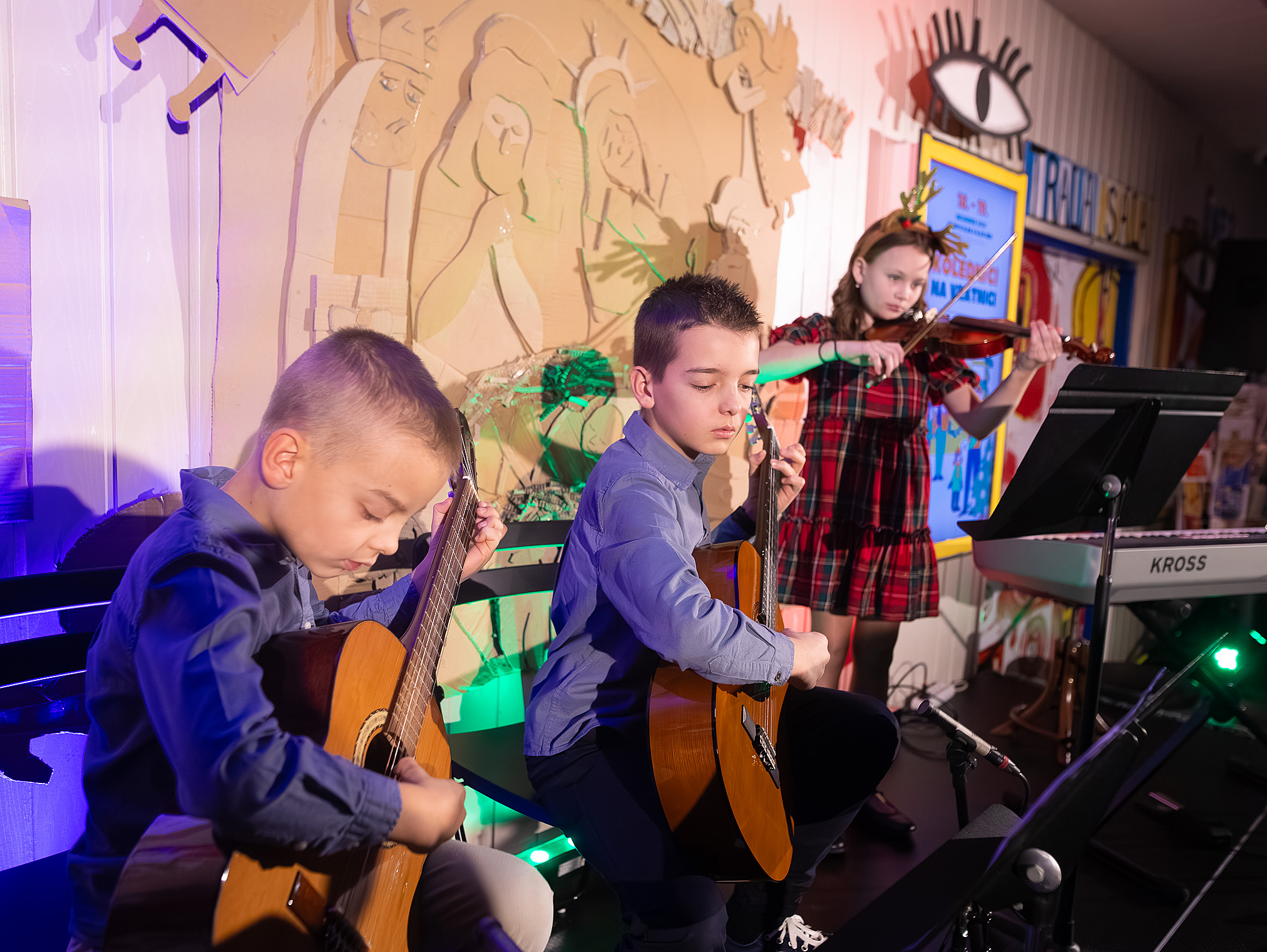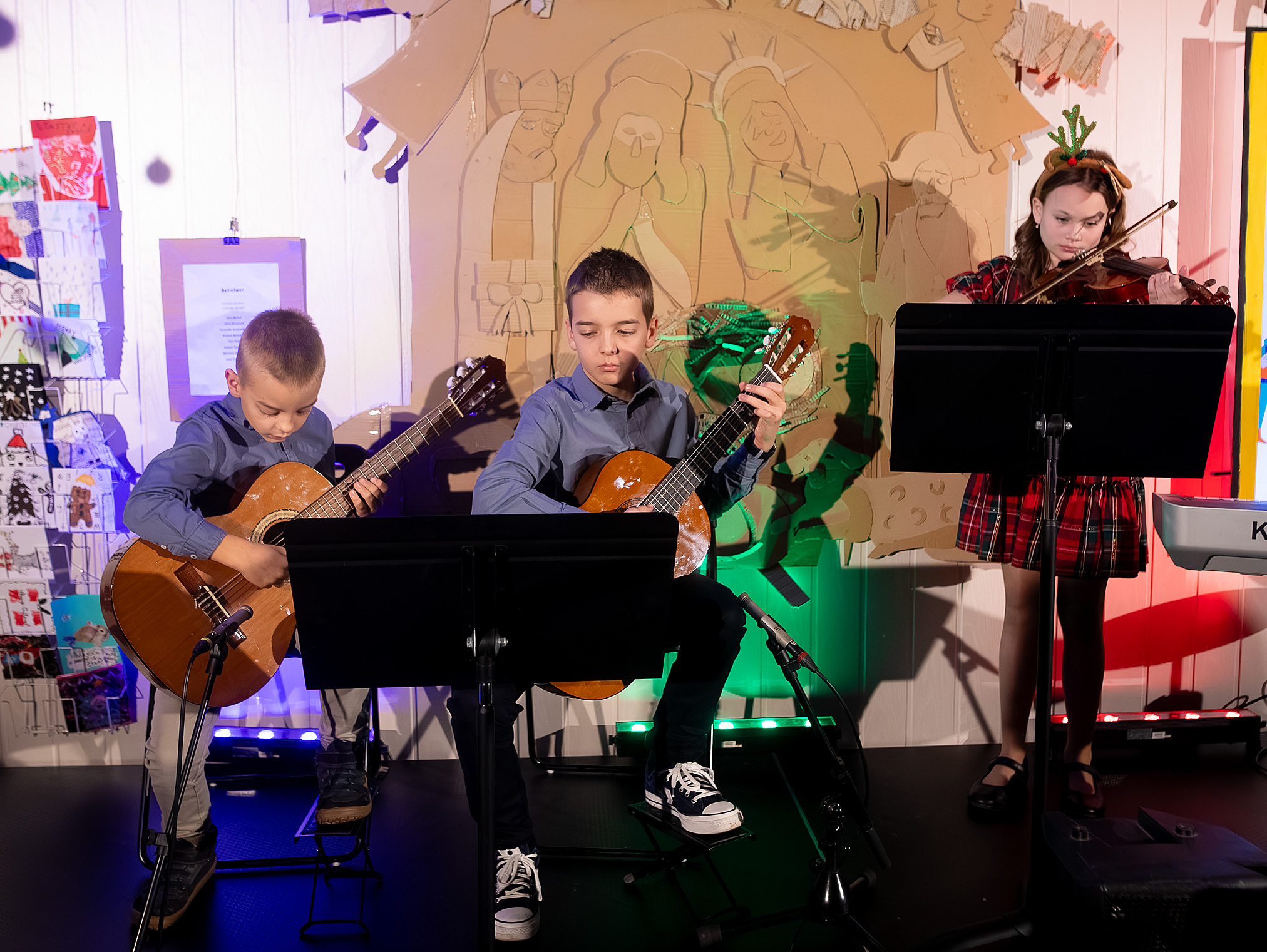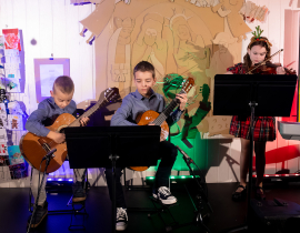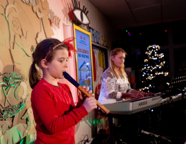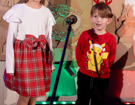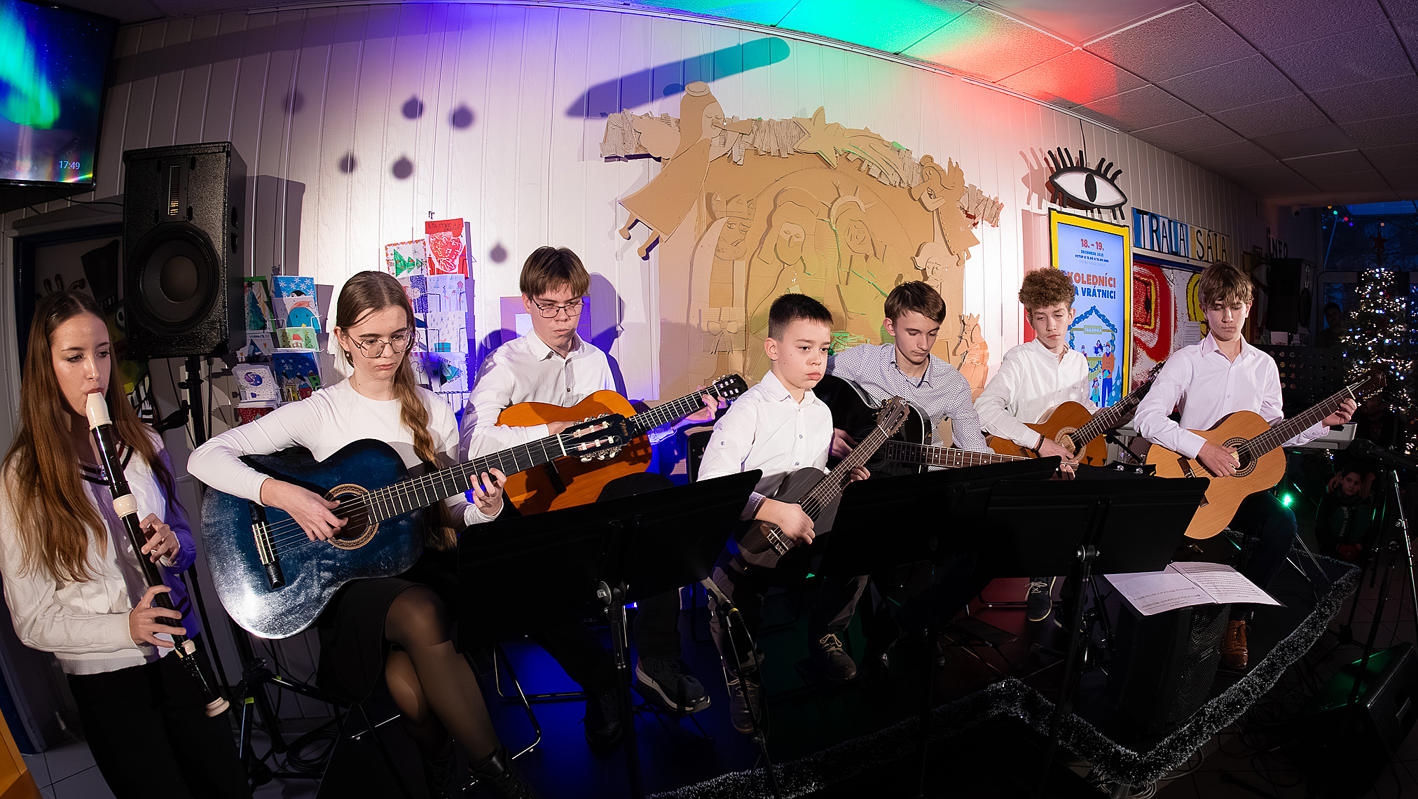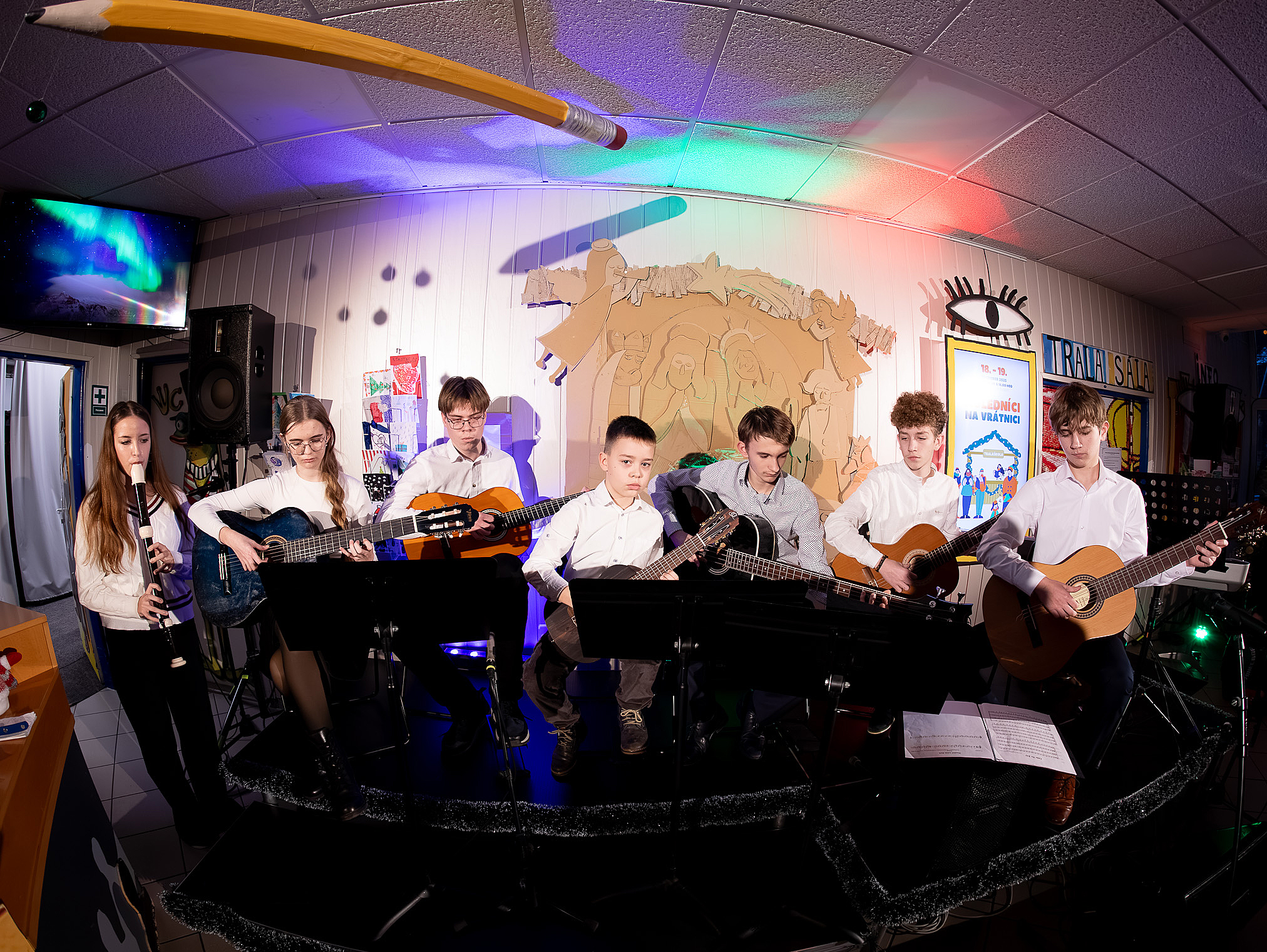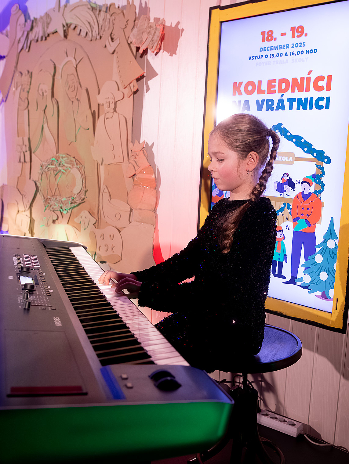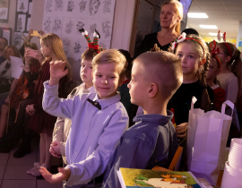 Ako už tradične, aj tento rok zavítali naši koledníci na recepciu školy /vrátnicu/, aby spríjemnili roddičom vstup do Tralaškoly v predvinočnom období. A tak vznikli Koledníci na vrátnici.